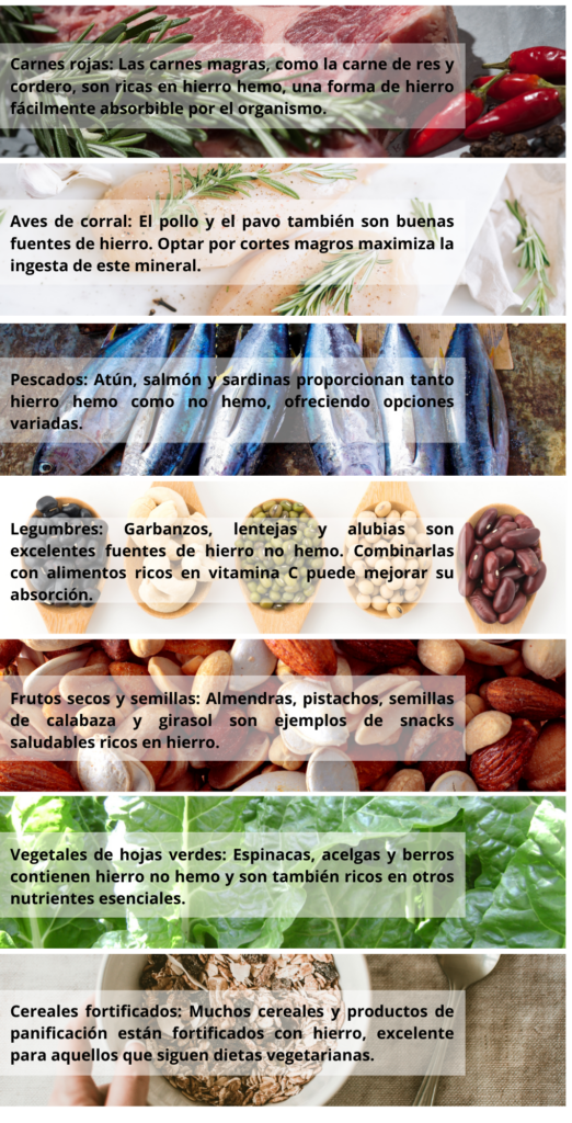 Nota: La absorción de hierro se puede mejorar consumiendo alimentos ricos en vitamina C, como cítricos, fresas o pimientos.