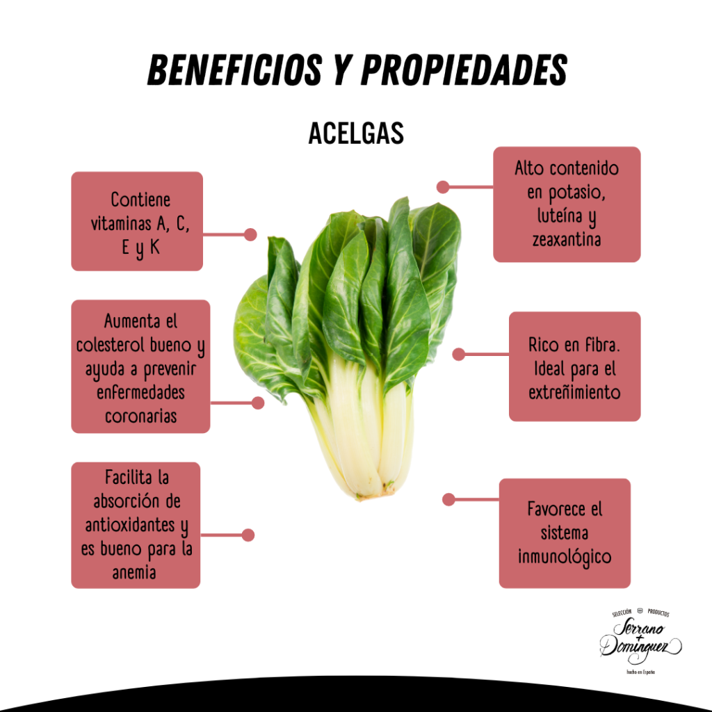 - Fortalecimiento de los Huesos: El contenido de vitamina K en las acelgas favorece la absorción de calcio, contribuyendo al fortalecimiento de los huesos y la prevención de la osteoporosis.