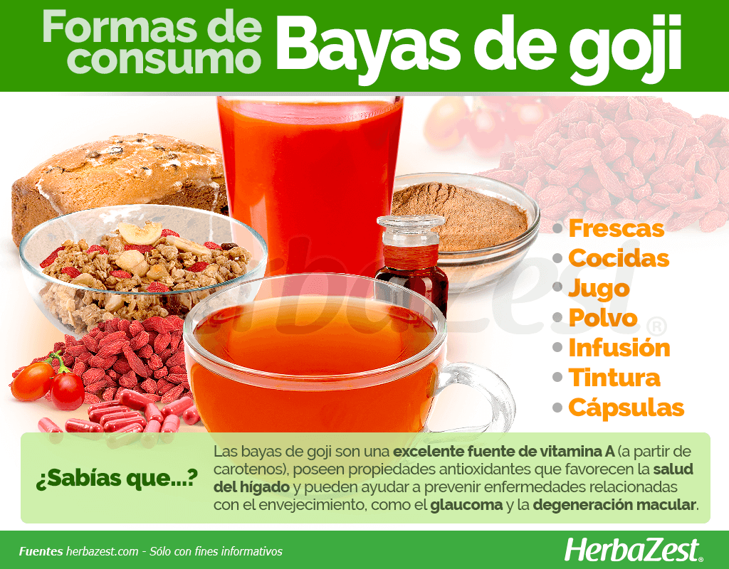- Se pueden preparar como infusiones. Las bayas de goji se pueden a帽adir a agua caliente para preparar una bebida refrescante y saludable. Se puede agregar miel o az煤car al gusto.
