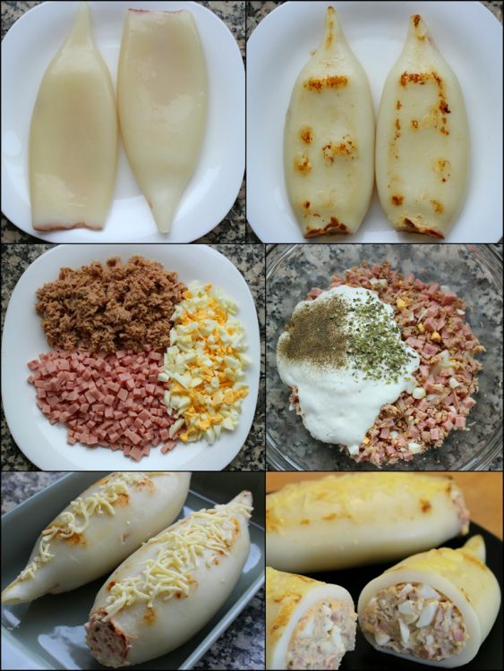 | 9 | Hornear a 180°C durante 30 minutos o hasta que los calamares estén tiernos. |
