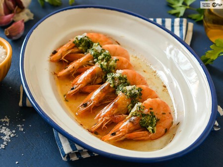 Langostinos a la plancha con salsa de ajo Langostinos, ajo, aceite de oliva, perejil, limón 5 minutos 3-5 minutos