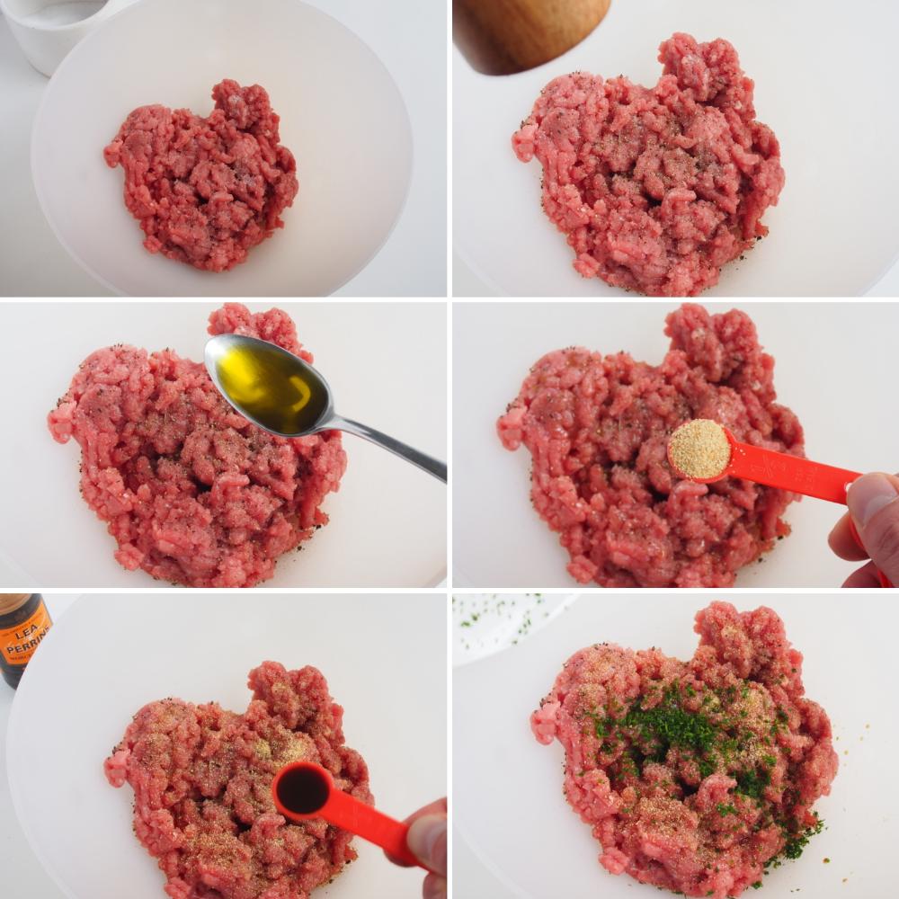 1. Prepara la carne: Mezcla la carne picada con sal y pimienta. No la amases demasiado, ya que esto puede hacer que la carne se endurezca.