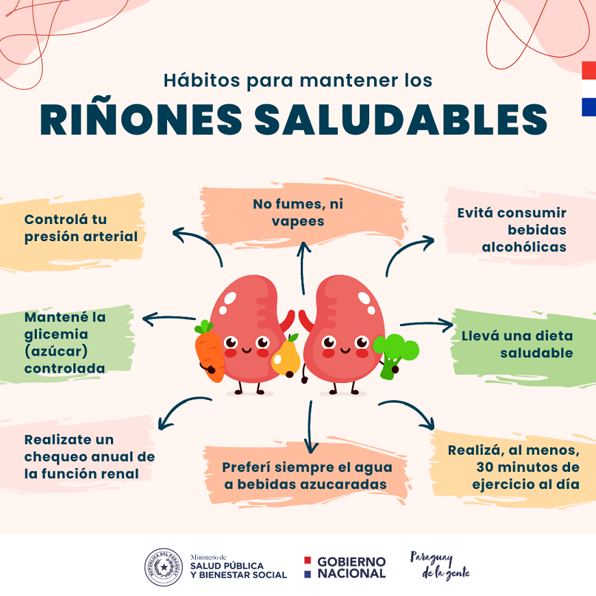 - Mantener una hidratación adecuada es fundamental para la salud renal. Beber suficiente agua ayuda a eliminar los productos de desecho del cuerpo y a prevenir la formación de piedras en los riñones. La cantidad de agua necesaria varía en función de la actividad física y el clima.