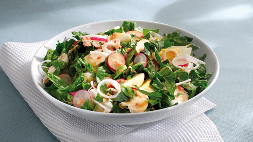 La ensalada de espinacas, huevo y tocino, un clásico en España, ofrece una combinación de nutrientes que aportan numerosos beneficios a la salud: