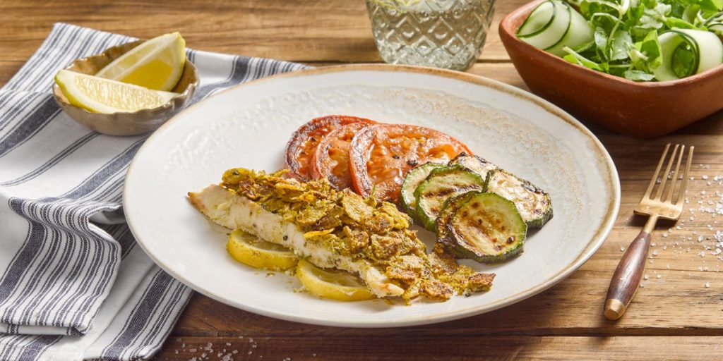 Ensalada fresca: Una ensalada simple con lechuga, tomate y cebolla roja complementa perfectamente el sabor del pescado.
