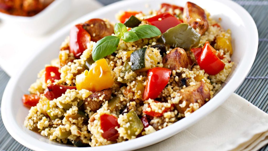 Arroz con pollo y verduras: Una opción sencilla y rápida de preparar. El arroz aporta energía, el pollo aporta proteínas y las verduras aportan vitaminas y minerales. - Opciones vegetarianas:
