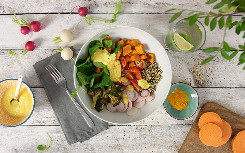 - Ensalada colorida: Combina diferentes verduras como lechuga, tomate, pepino, cebolla, pimiento, espinacas y zanahoria. Añade proteínas como pollo, pescado o legumbres, y un aderezo ligero a base de vinagreta.